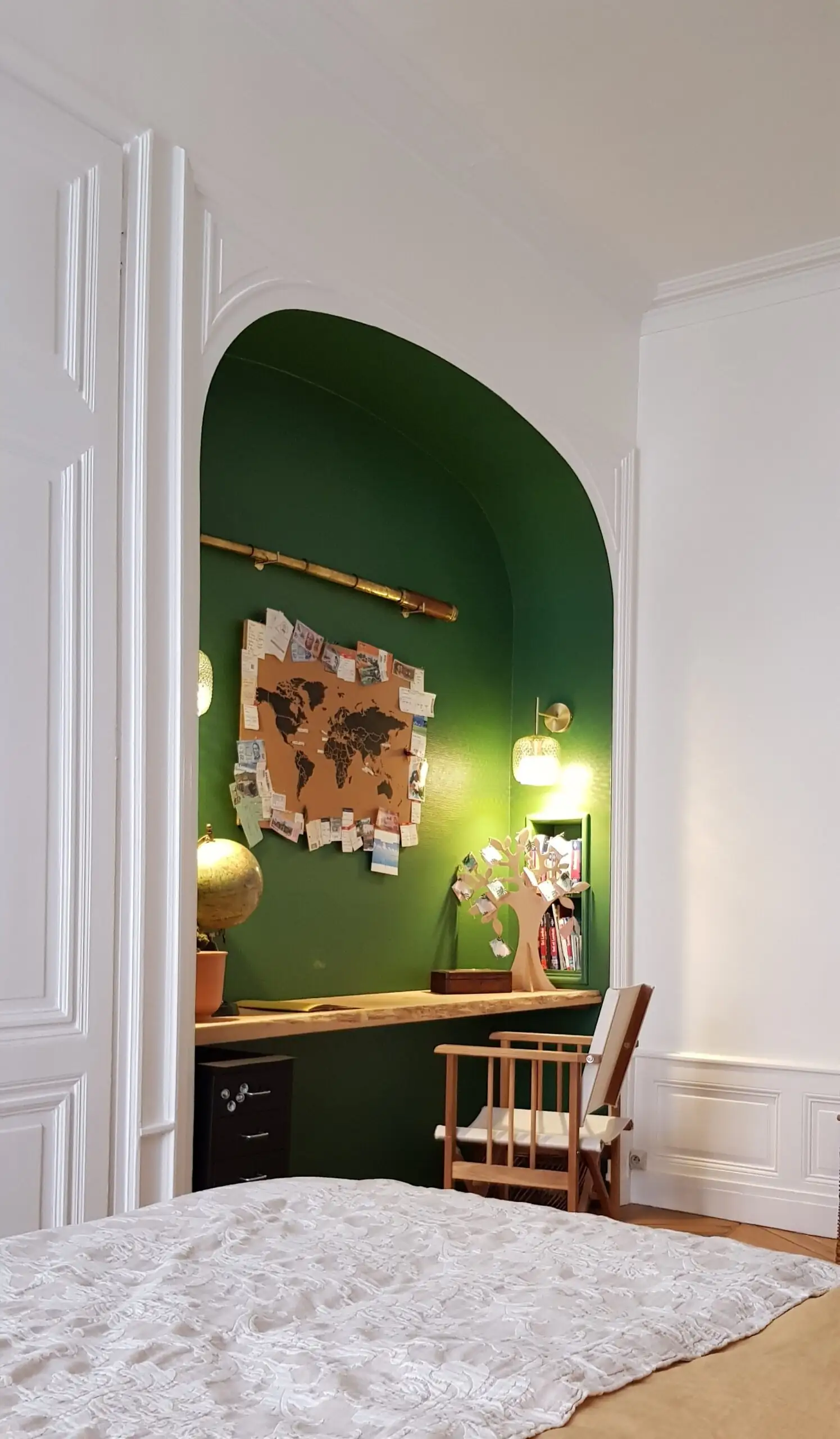 Les chambres existantes depuis des années, ont été décoré avec soin en conservant les moulures et l’ornement.