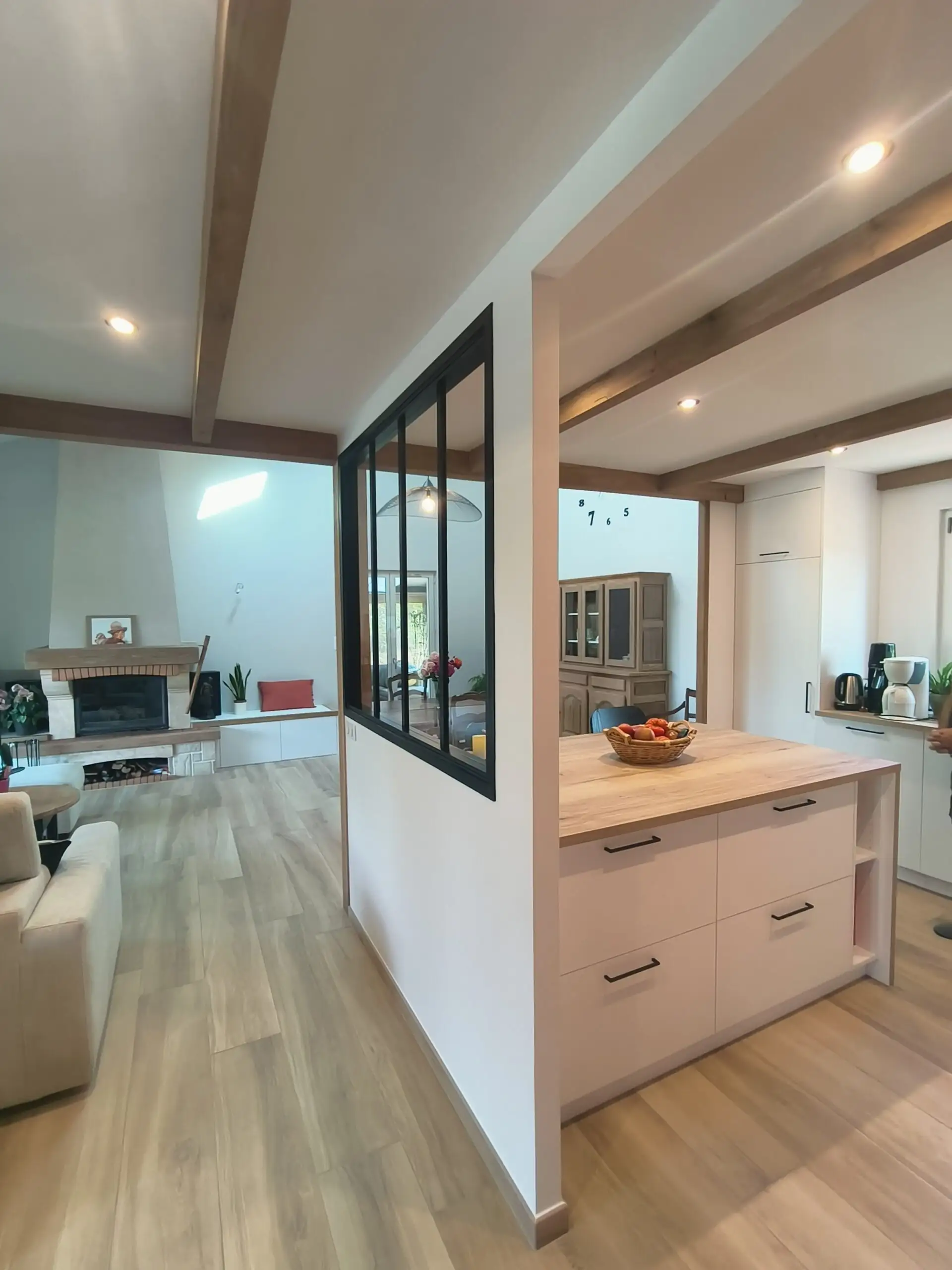 La cuisine s'ouvre désormais sur le salon/séjour, créant un véritable espace de vie ouvert.
