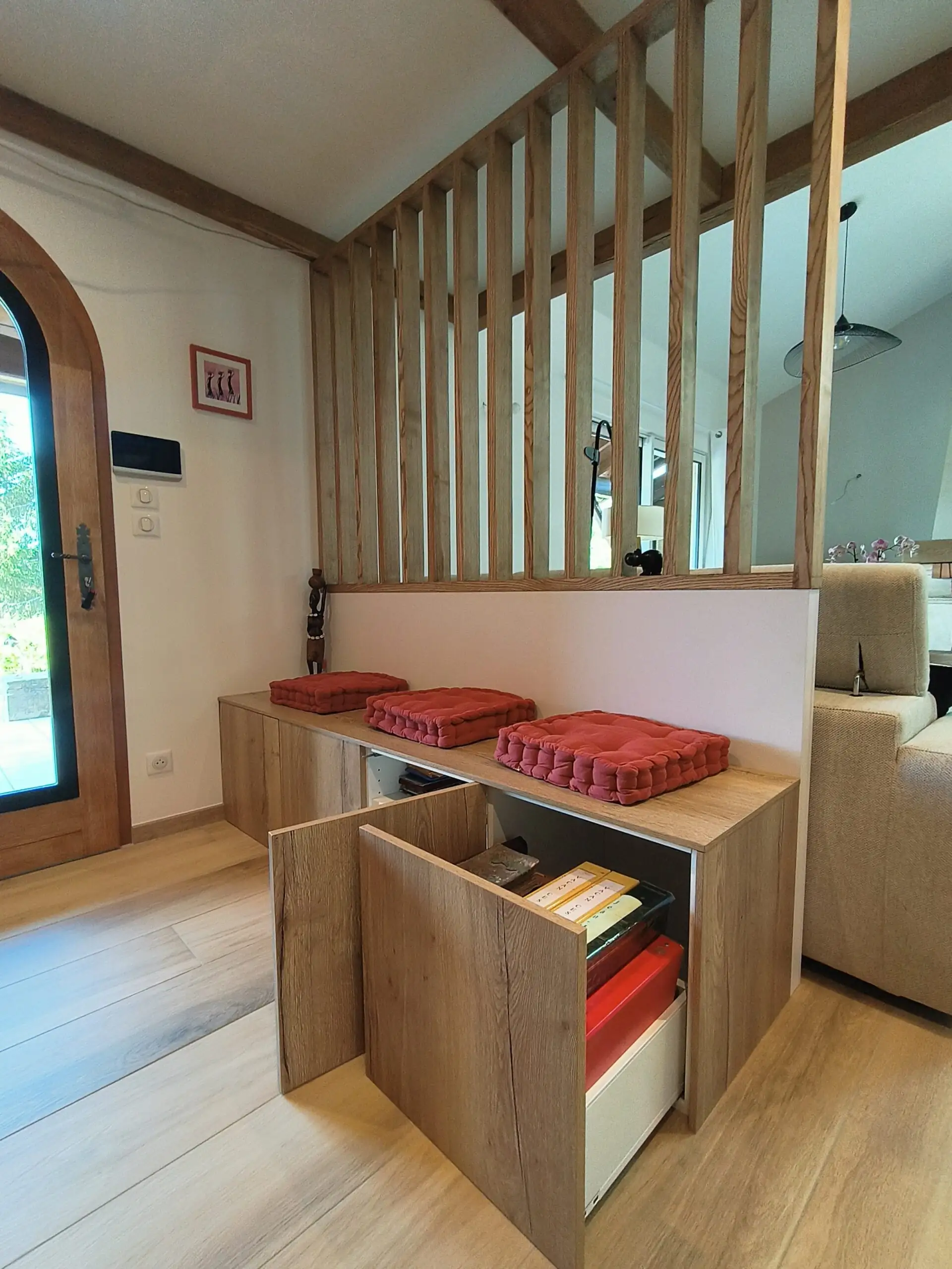 Au dos du salon, nous avons créé la nouvelle entrée avec :