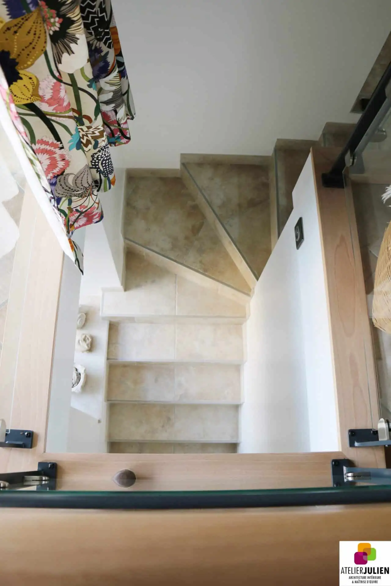 La rénovation complète de cette maison en pierre a permis de conserver son authenticité tout en lui donnant un look plus moderne et intime. Les propriétaires peuvent maintenant profiter d‘un espace qui allie le charme ancien et le style contemporain grâce à l‘intervention de l‘agence Atelier Julien.